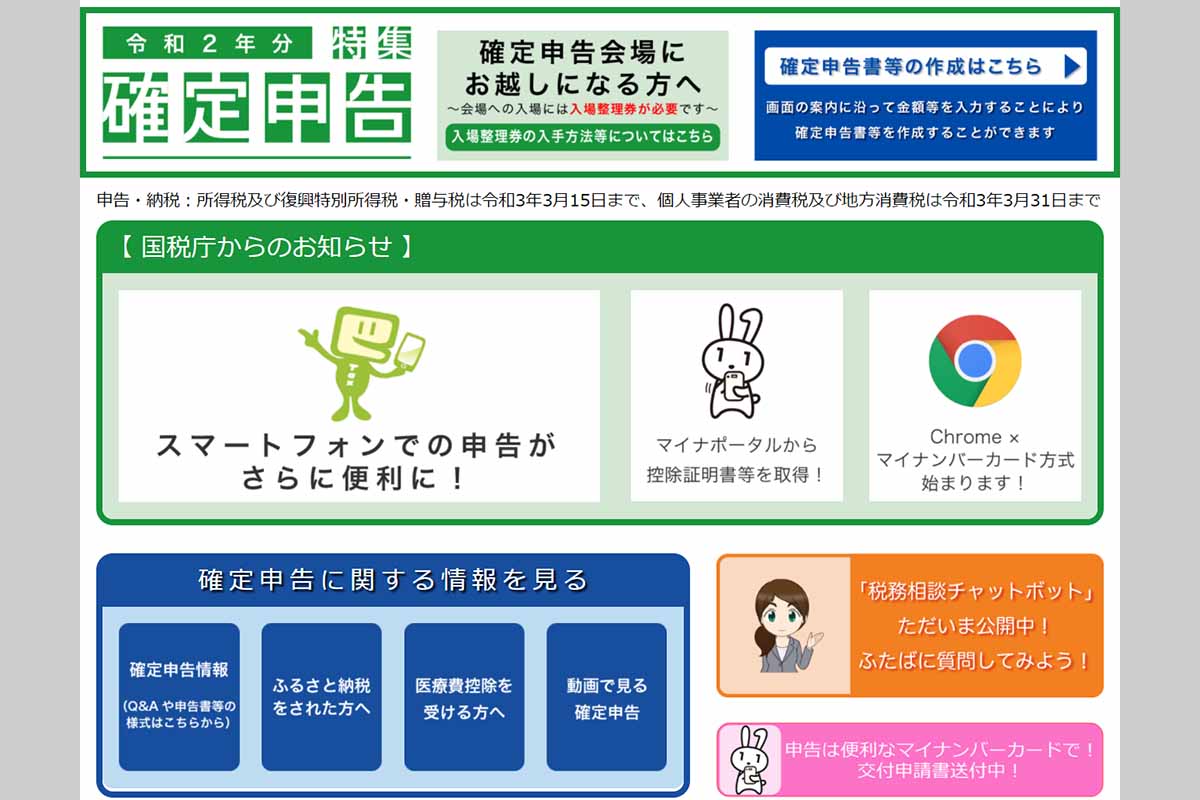 確定申告会場にお越しになる方へ 令和2年分 確定申告特集